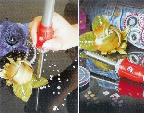 A dekorpákához tartozik egy vákuummotor, melynek segítségével egyszerűen fel kell szippantanok az egyes strasszköveket, és azonnal a kívánt felületre helyezheted.